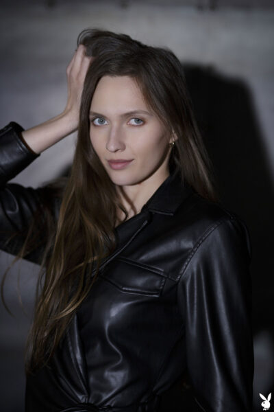 Stacy Cruz puts on a riveting display in her latex jacket with matching sheer bra and panties, which is a great look for her on Playboy.