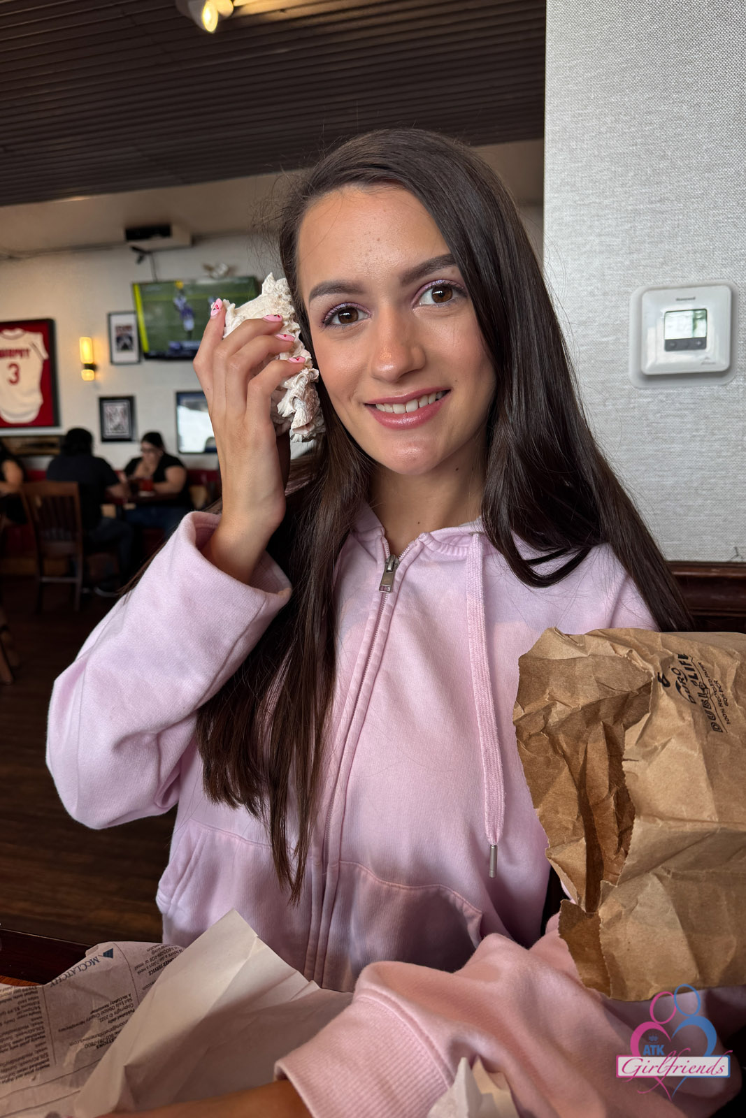 Summer Renee likes to have fun in her pink hoodie and mini skirt before going back to bed for even better naked fun on ATK Girlfriends.