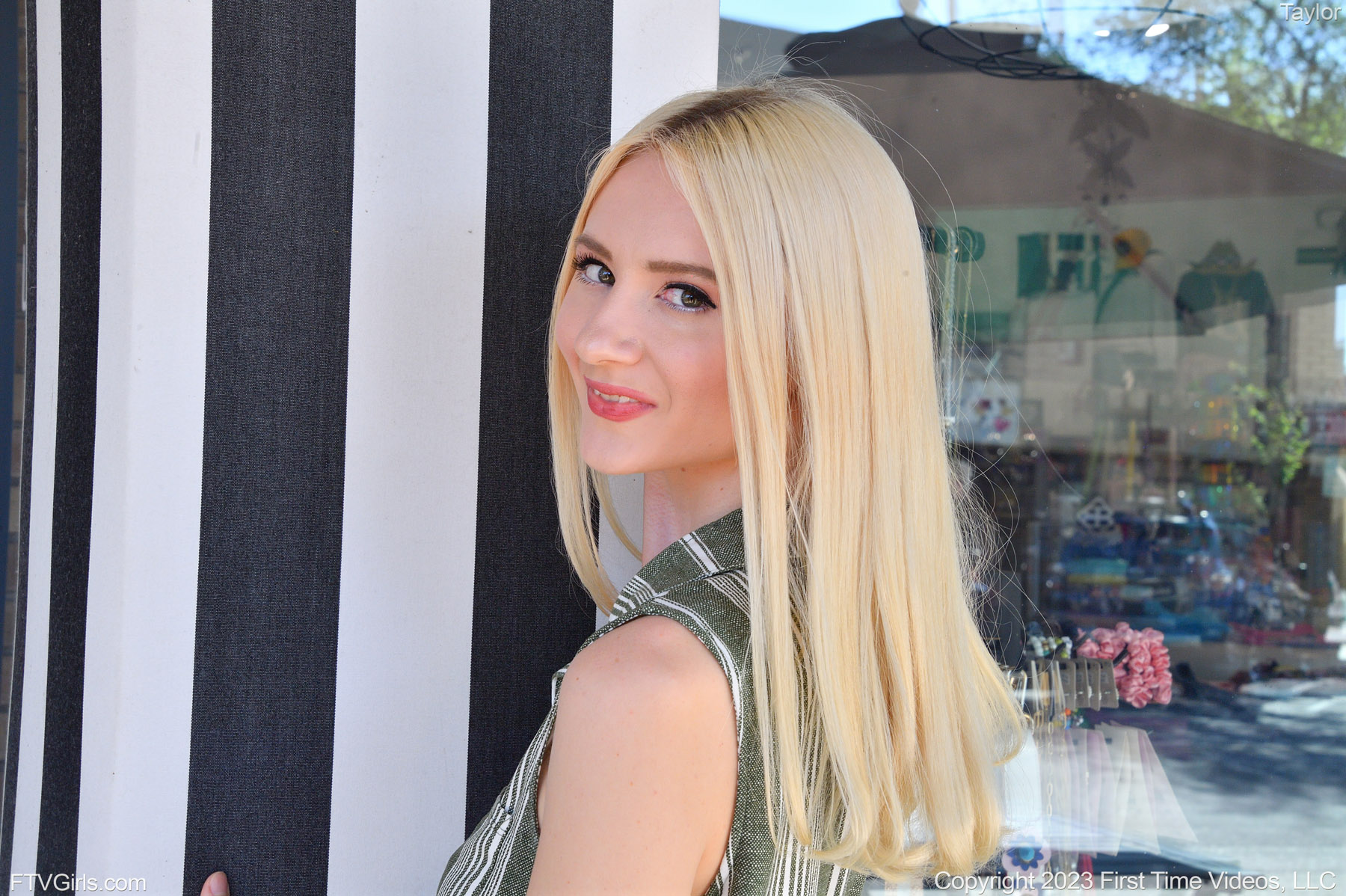 Taylor Mae is that cute blonde lifting up her dress in public so she can flash her bare ass and pussy on FTV Girls for the set Time For Upskirt.