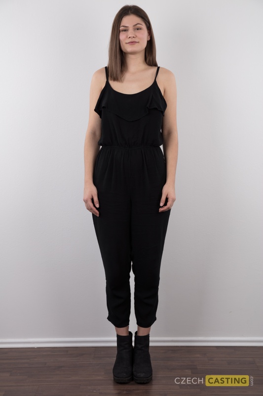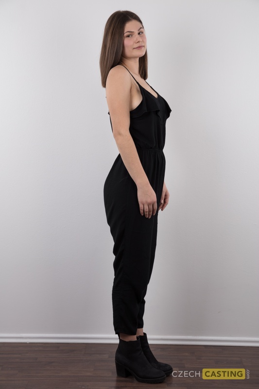 . She's a bit mysterious, a sexy brunette in black, but when she takes her clothes off, we find a tight beauty with a nice plump ass.