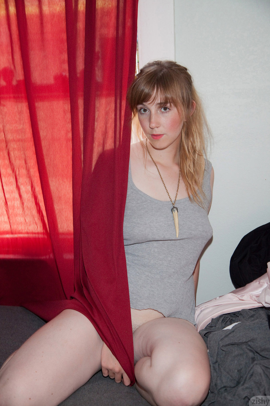 Tilly Hannon does some spring cleaning in her robe which then opens up to reveal her perfect perky tits and pussy on Zishy.