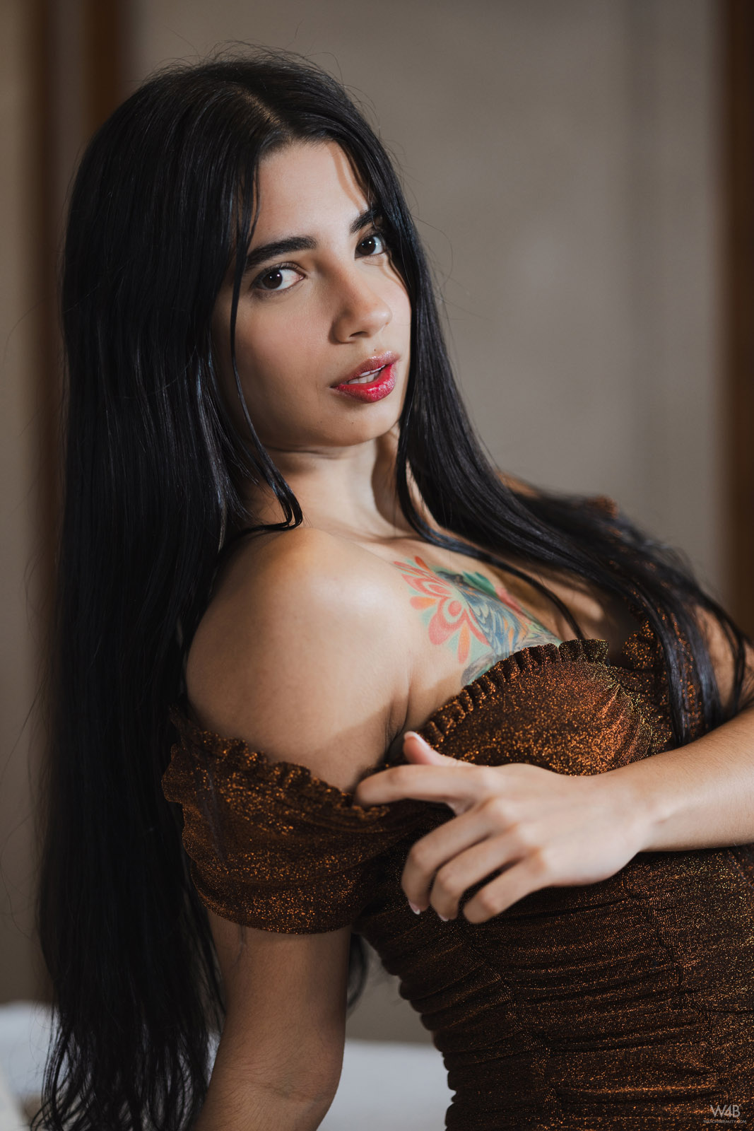 Tormenta sips on her tea in a mini dress without any panties because this horny latina is about to play with toys on Watch4Beauty.