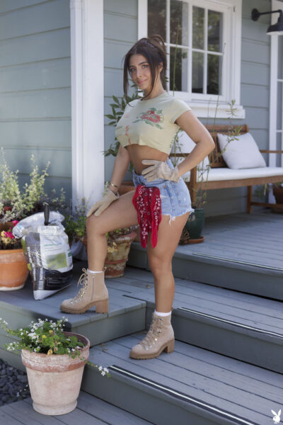 Tru Kait shows off the best Garden View you will see because this busty neighbor gets fully naked to plant things on Playboy.