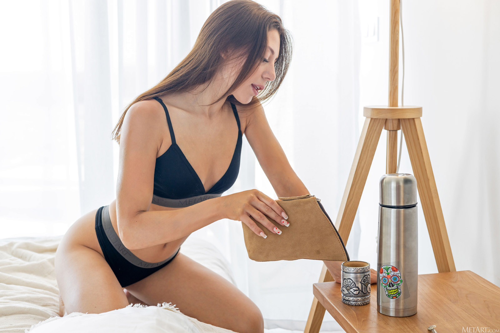 Usha is softly undone as she takes off her casual bra and thong so she can literally roll around naked in bed on Met Art.