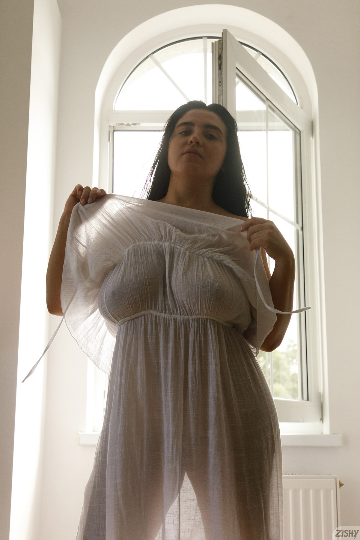 Vyeta Mustafina is the ultimate naturally curvy model who is showing off For Angels while she actually flashes her pussy on Zishy.