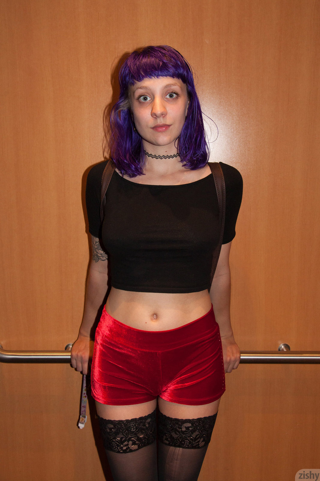 Zelda Andover is that purple haired hipster who only rides fixie bikes but also loves showing off her tight body on Zishy.